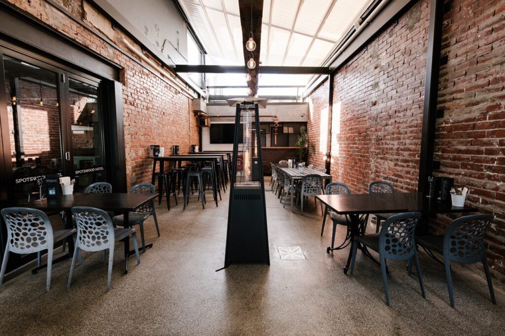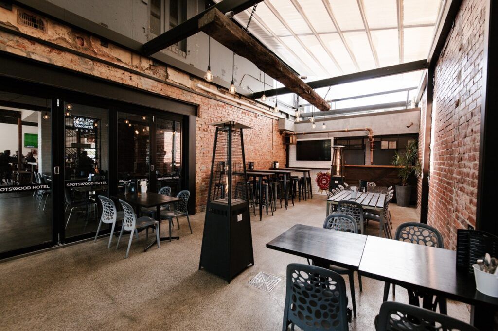 The Beam Bar is an extension to the heart of the Spotswood Hotel; an all-weather heated space featuring retractable awnings and boutique bar. This area is a favourite for smaller events, with our new flower wall and greenery its a beautiful space that can host daytime delights and a is a great area for evening and night time shenanigans as it gets lit up by our strobe lights for a party style space that will wow your guests!